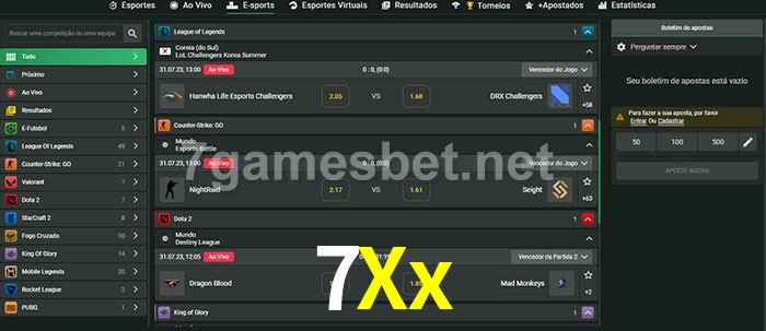 A aposta 7Xx oferece aos jogadores a experiência mais conveniente de apostas em eSports!